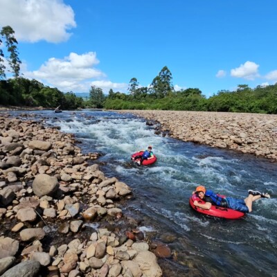Com duração de aproximadamente 1h30 a 2h entre remansos, banho de rio e corredeiras damos início a descida.