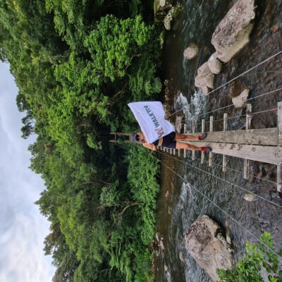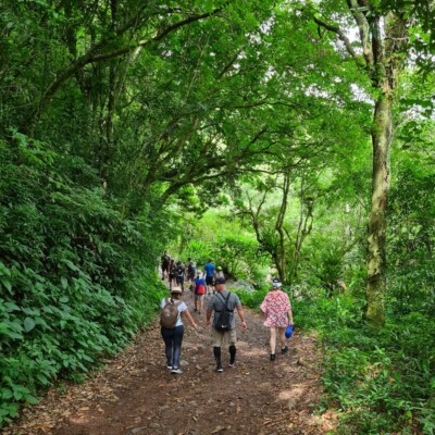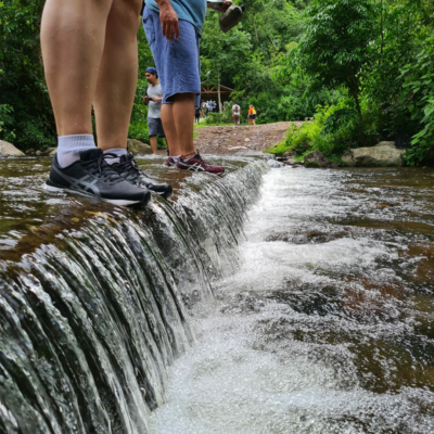 O desafio da caminhada começa quando deixamos a estrada para trás e atravessamos o Rio Forqueta, entrando na mata. Nesse trecho, enfrentaremos subidas e descidas íngremes, com obstáculos naturais que exigirão atenção e superação.