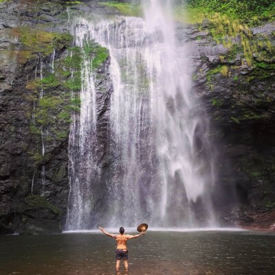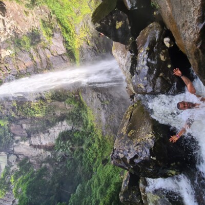 Ao chegarmos à cascata, seremos recompensados com uma queda d’água de 76 metros de altura e um poço de banho, onde é possível acessar a parte de trás da queda, proporcionando uma experiência única.